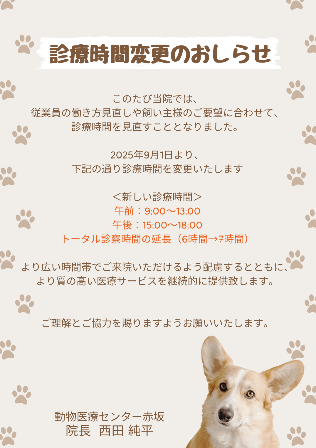 いつも動物医療センター赤坂をご利用いただき、誠にありがとうございます。
