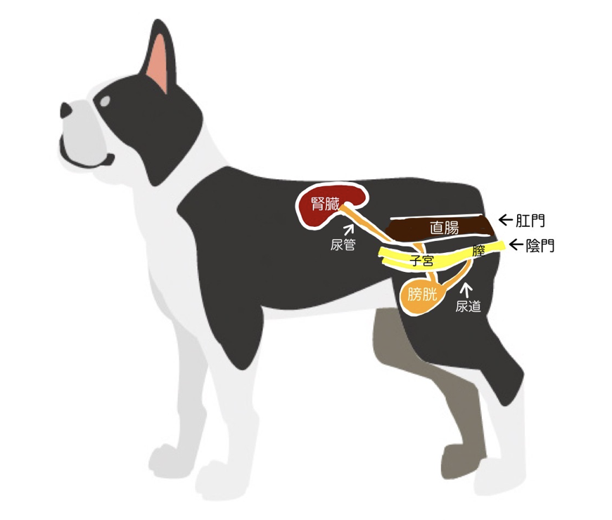 特にメスの場合、肛門(便の出口)と陰門(尿の出口)が近く尿道が短いため、上行感染による発生率が高いです。原因菌には大腸菌・ブドウ球菌・腸球菌などがあります。
