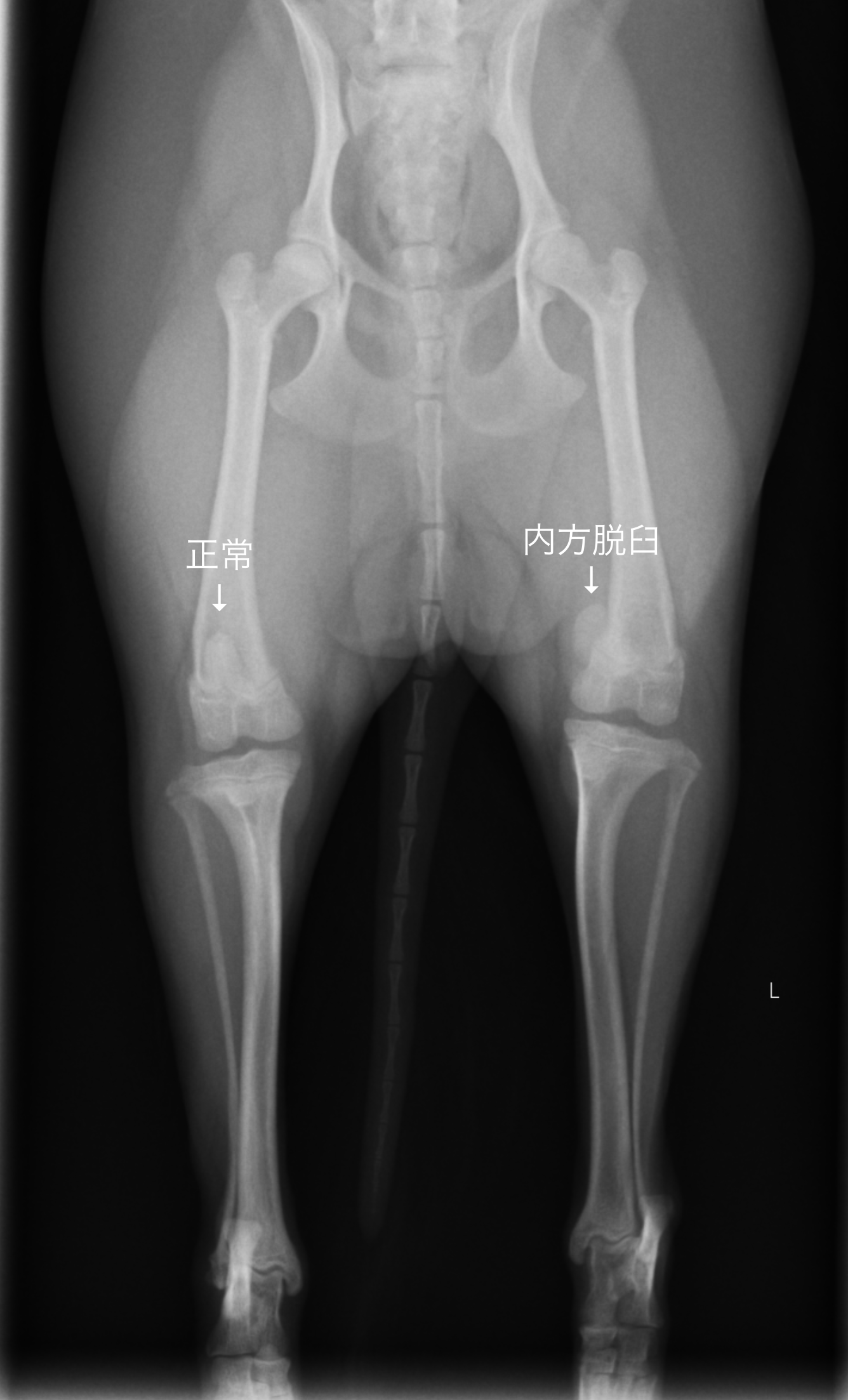 ・レントゲン検査(膝蓋骨の位置、骨の変形を見る)
